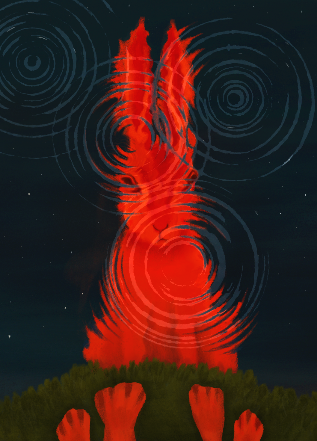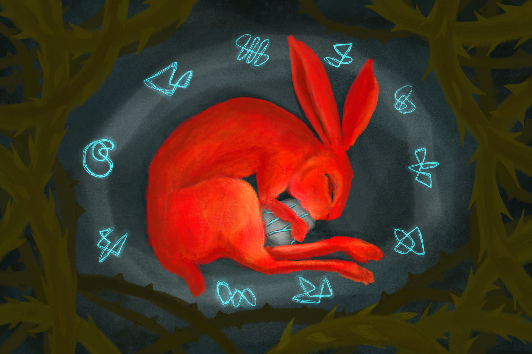 Folktale Week is an annual online illustration challenge built around daily single-word prompts. Participants respond to each prompt with a new piece across the week, either illustrating an existing folktale or creating their own original story. I created my own story of a hare weathering a wave of difficult emotion.